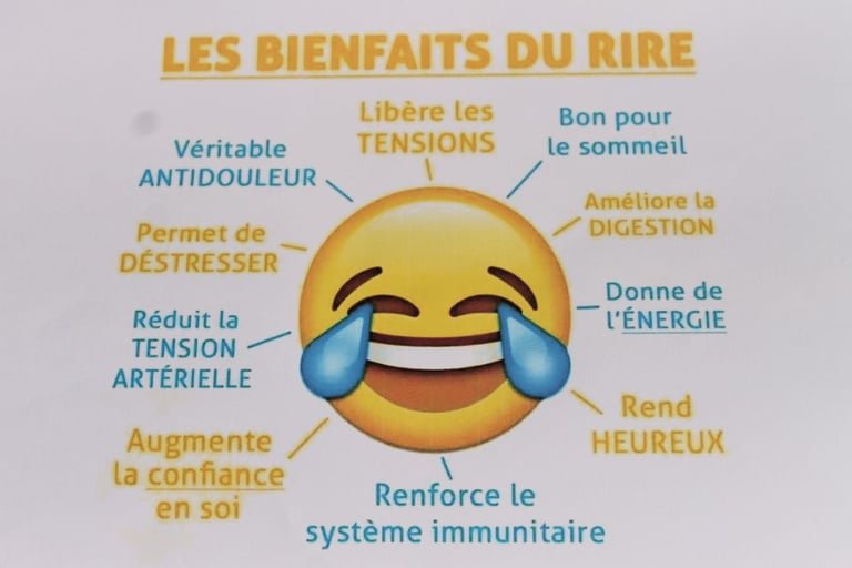 Le rire a tout d’abord un intérêt sur le plan physiologique : Il agit sur les tensions en détendant le diaphragme et en massant les viscères. Il entraîne la libération des hormones du bonheur (dopamine notamment) et allège le niveau de stress.